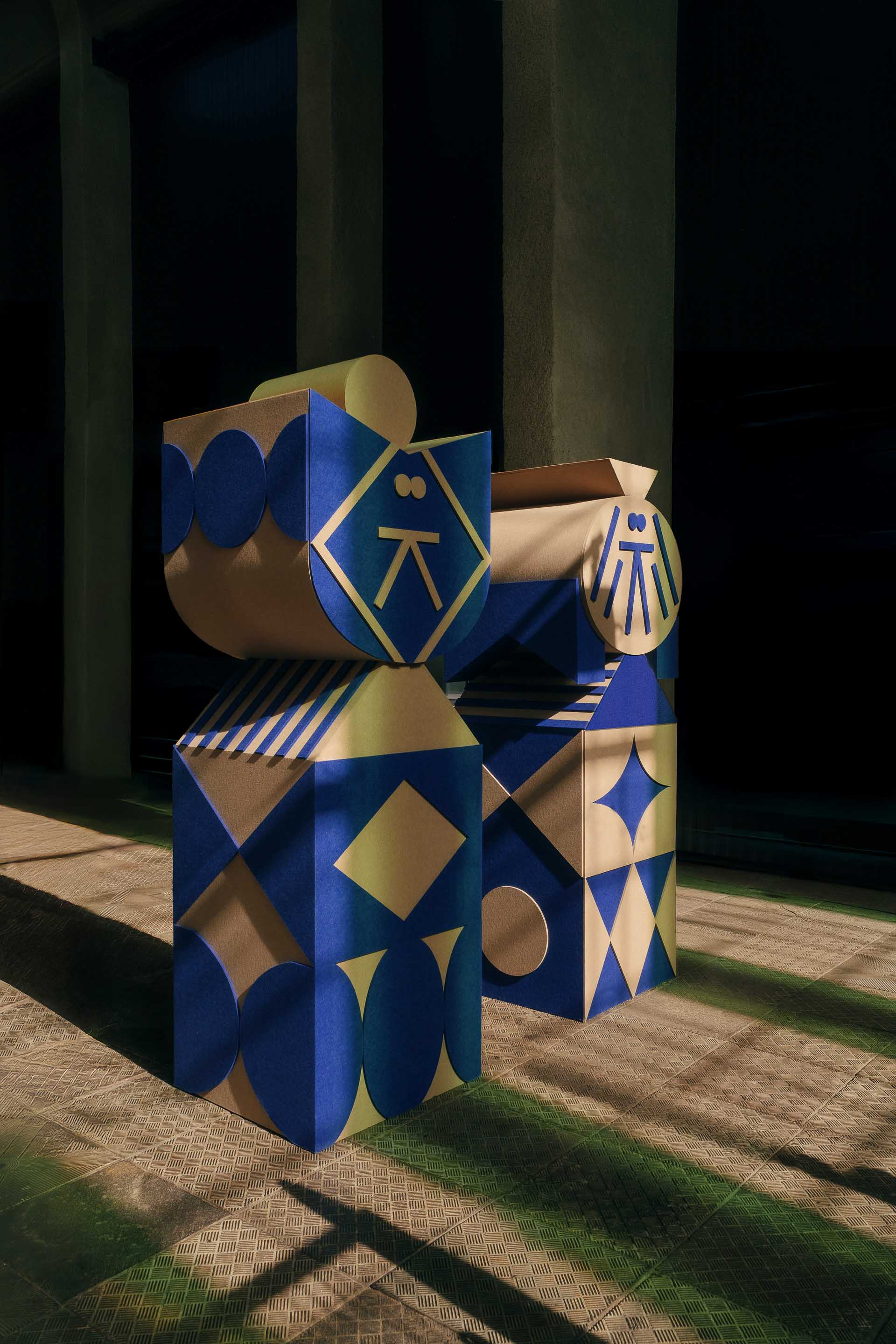 Each totem is crafted entirely from 100% recycled acoustic material, with no additional substructure, allowing for full recyclability — aligning with the principles of responsible design. It’s a fusion of sculptural aesthetics, regional symbolism, and environmental awareness.