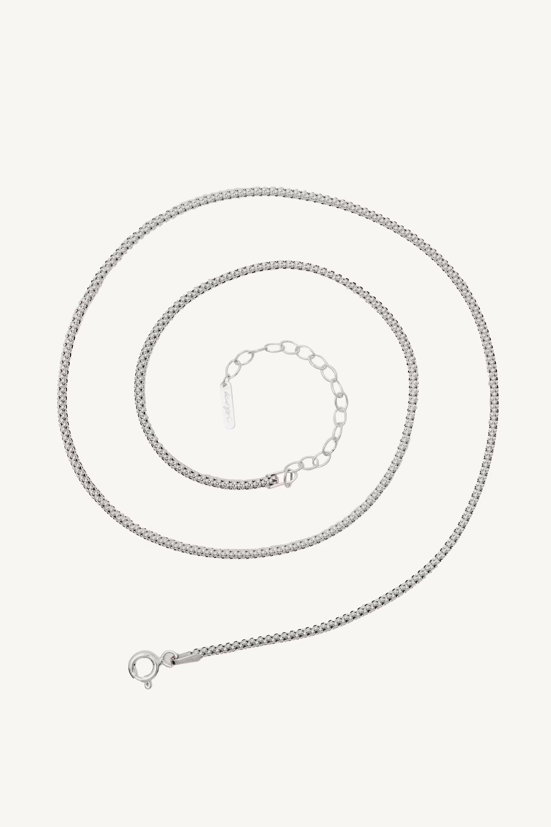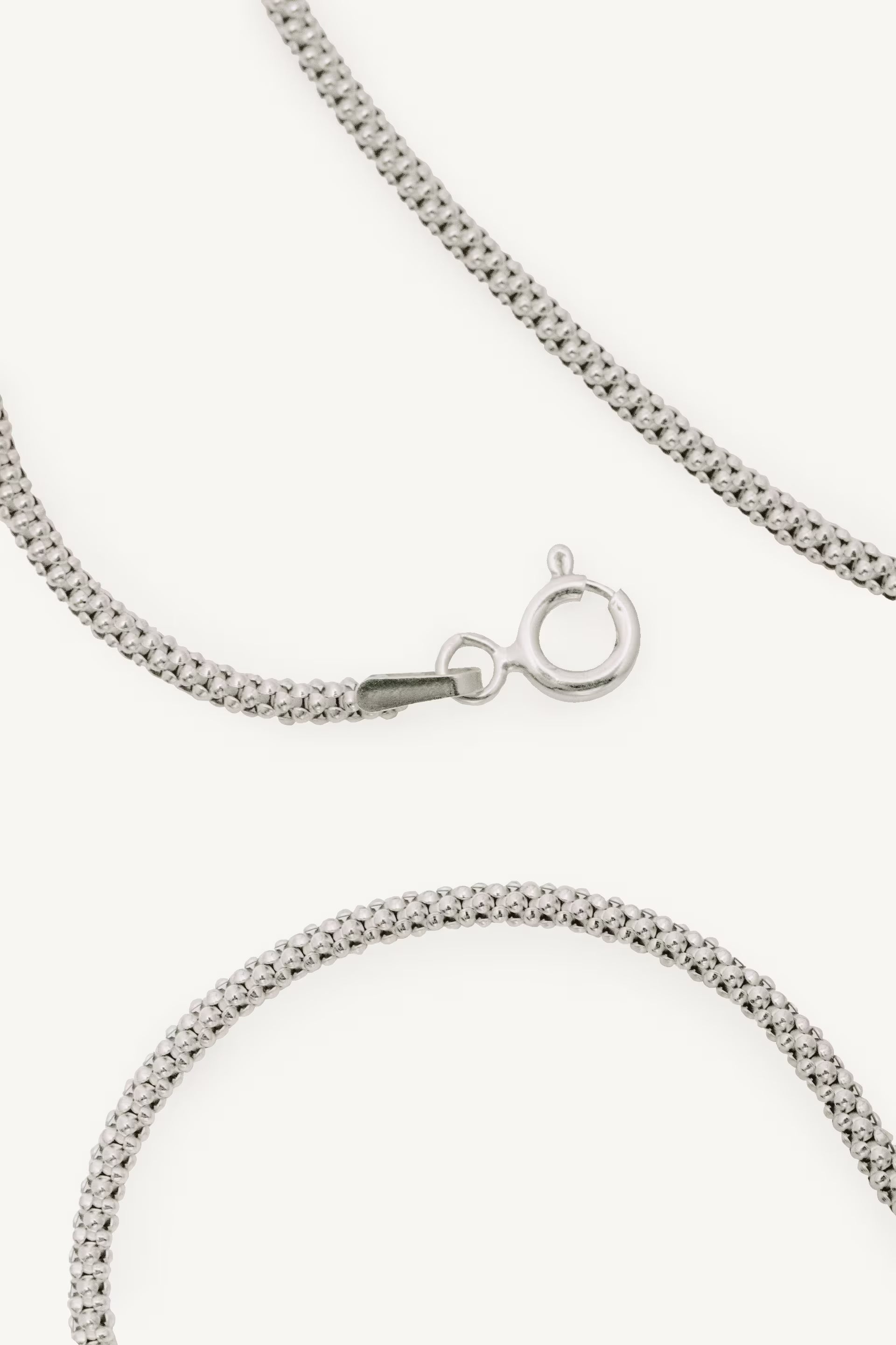 Owalny, regulowany łańcuszek typu „popcorn”, wykonany z recyklingowanego srebra próby 925. Idealny do przypinania ulubionych zawieszek LUDISM x KOPI za pomocą zapięć.