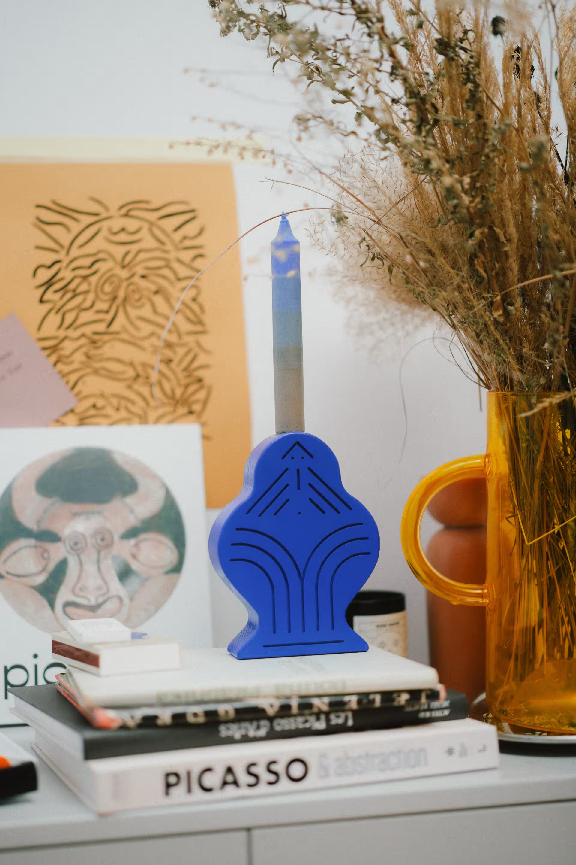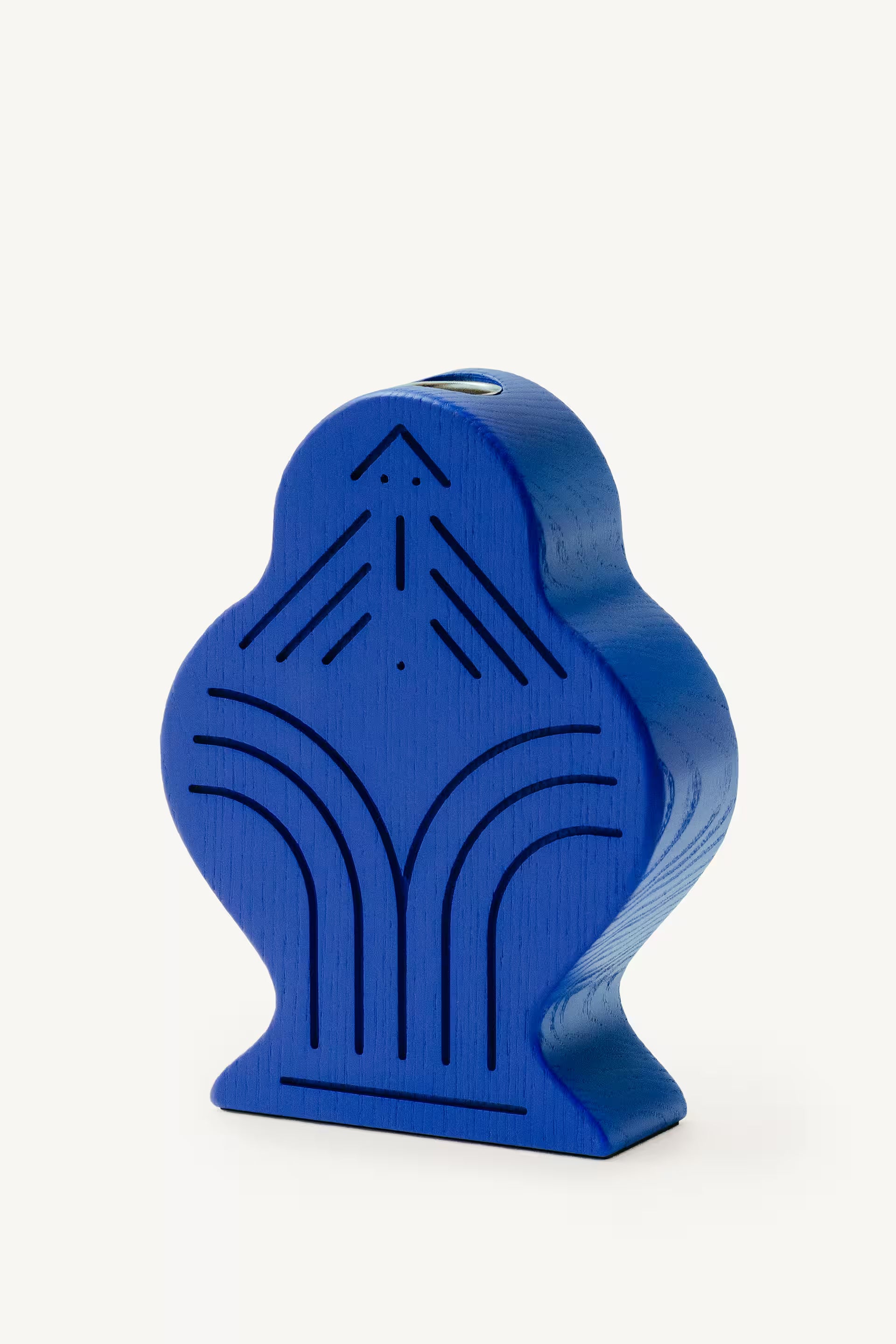 Mini figurka z jesionowego drewna, która służy jako świecznik, wazon, kadzielnica i obiekt artystyczny. Każdy egzemplarz jest ręcznie malowany, co czyni go wyjątkowym.
