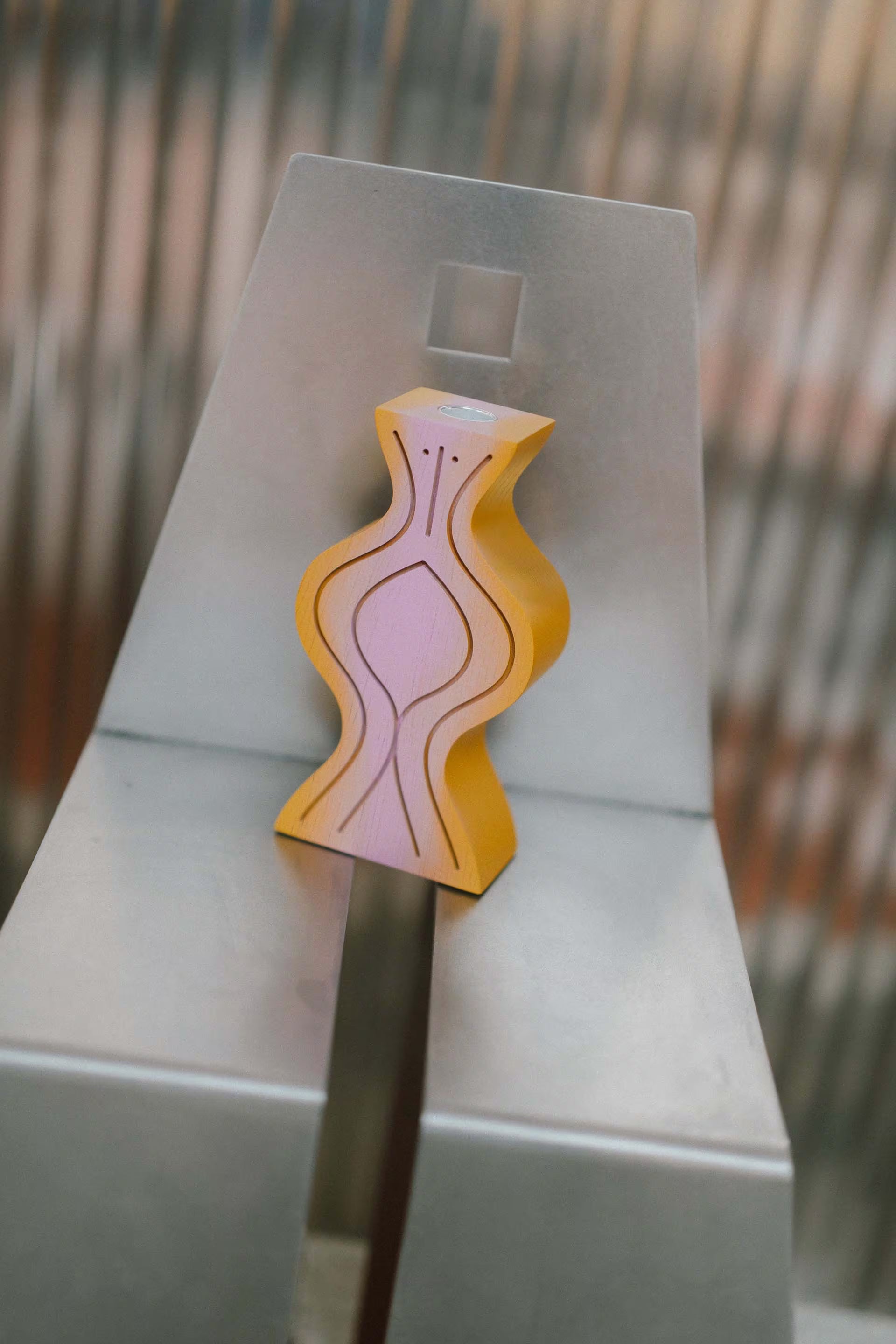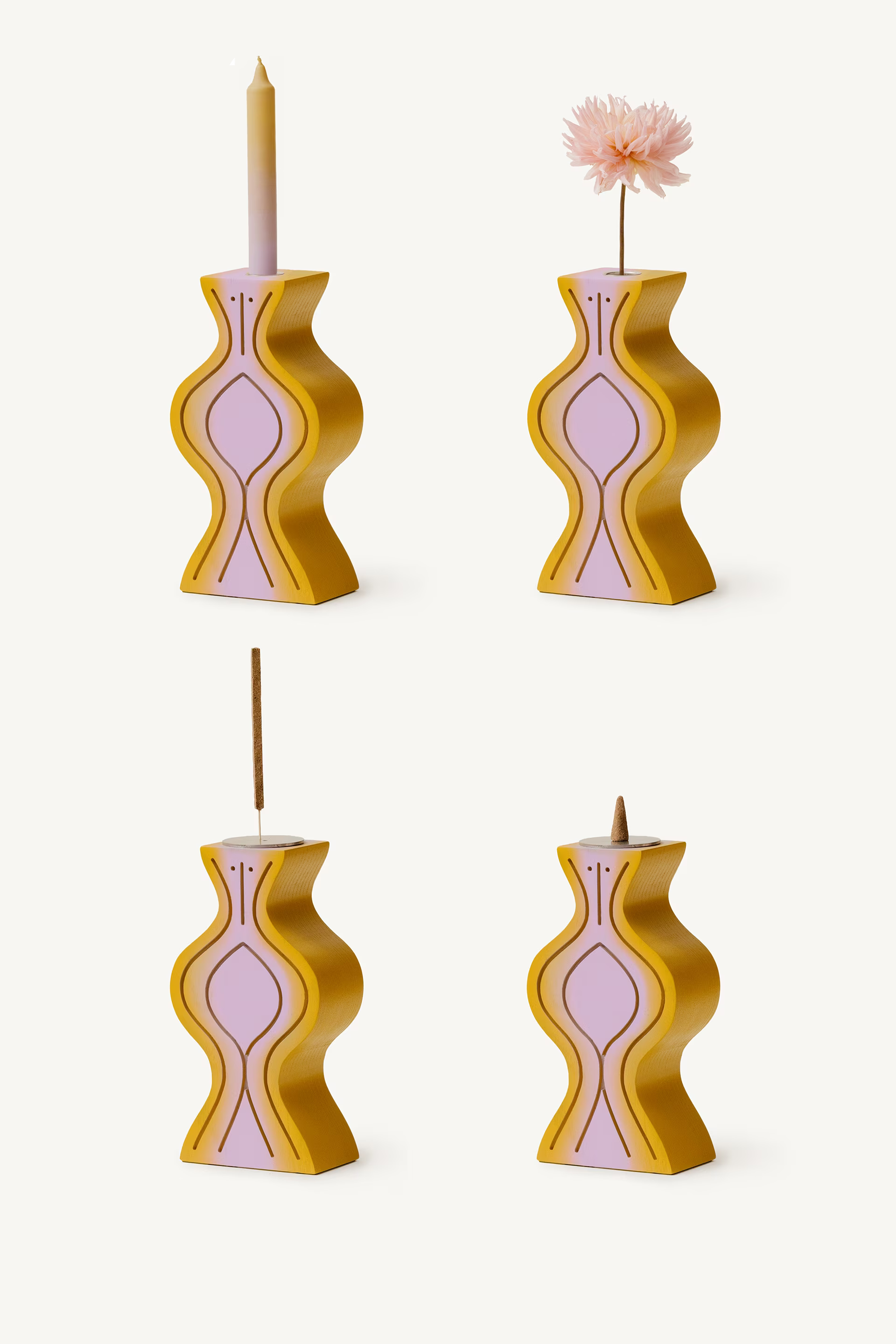 Ash wood figurine that serves as stick-candle holder, vase, incense burner, bookend and artistic object. Each piece is hand painted, therefore unique.