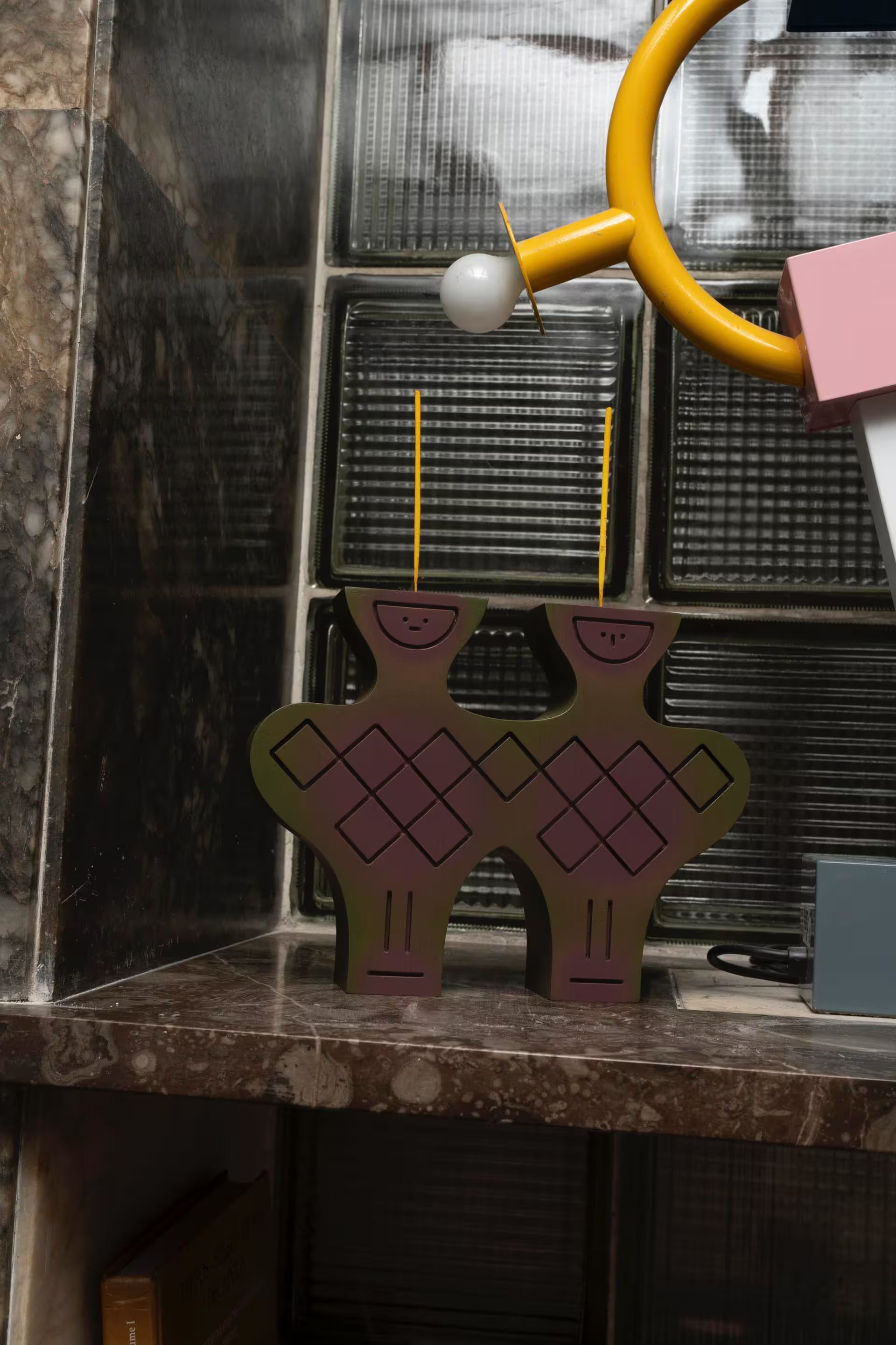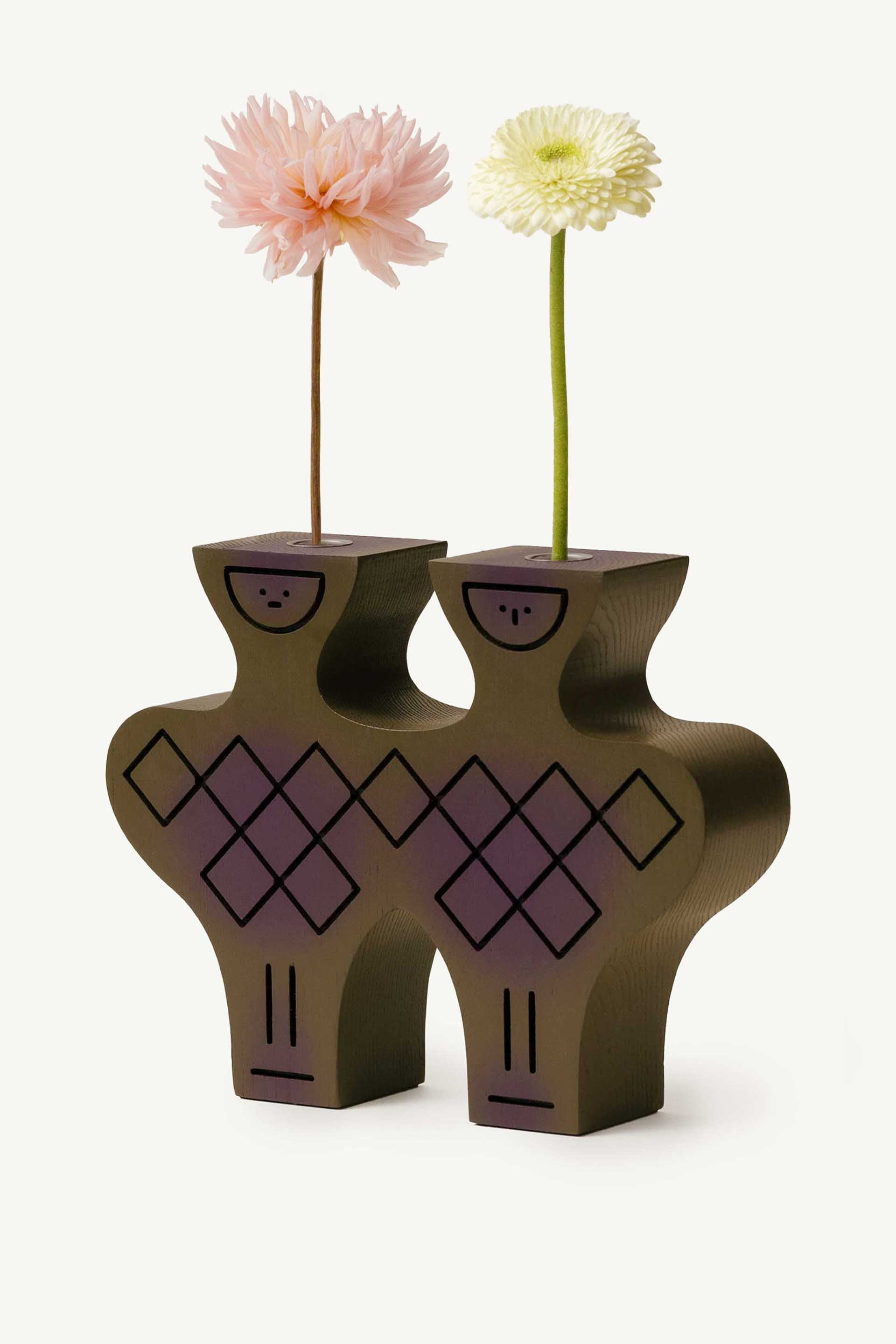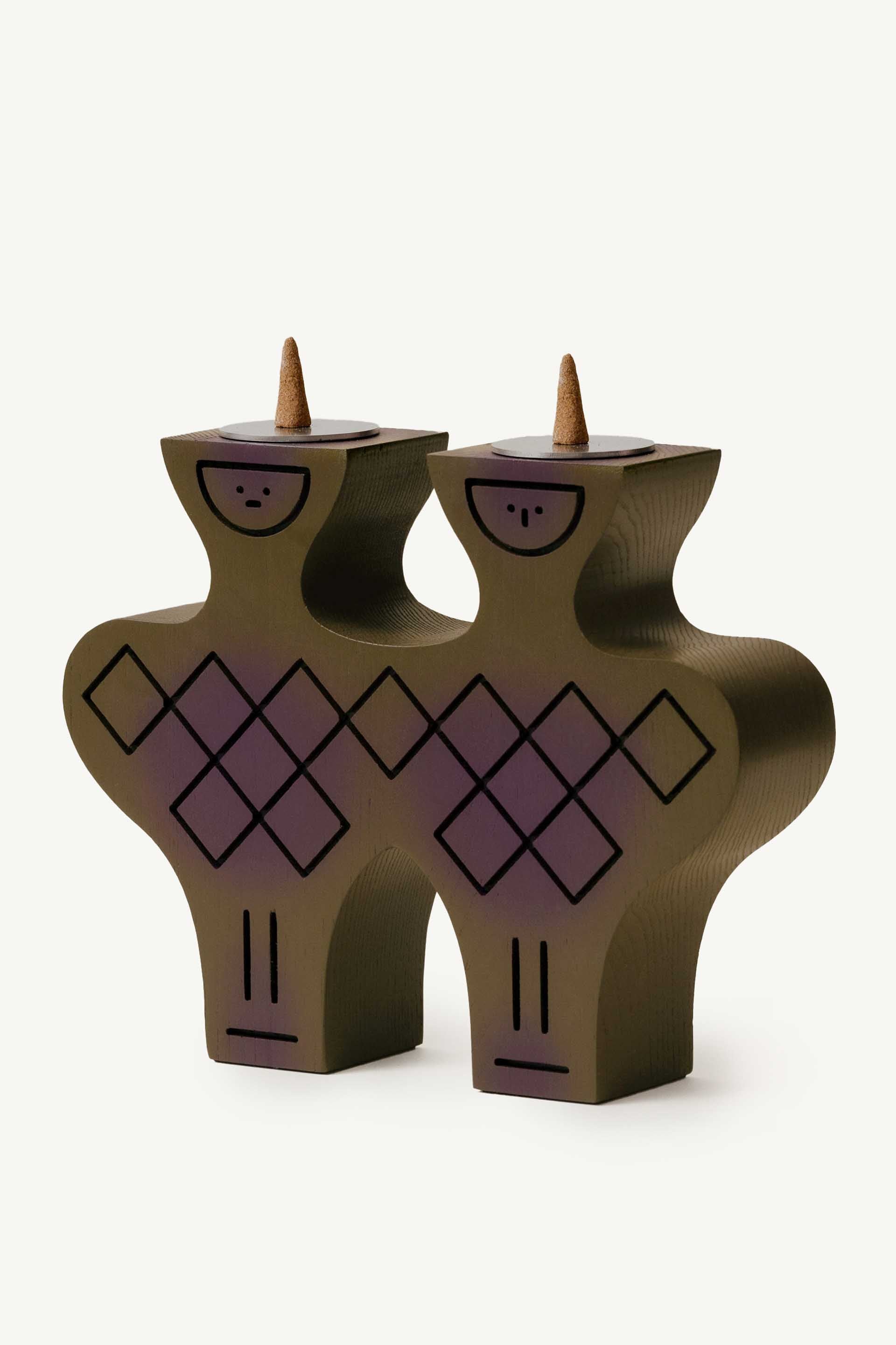 Ash wood figurine that serves as stick-candle holder, vase, incense burner, bookend and artistic object. Each piece is hand painted, therefore unique.
