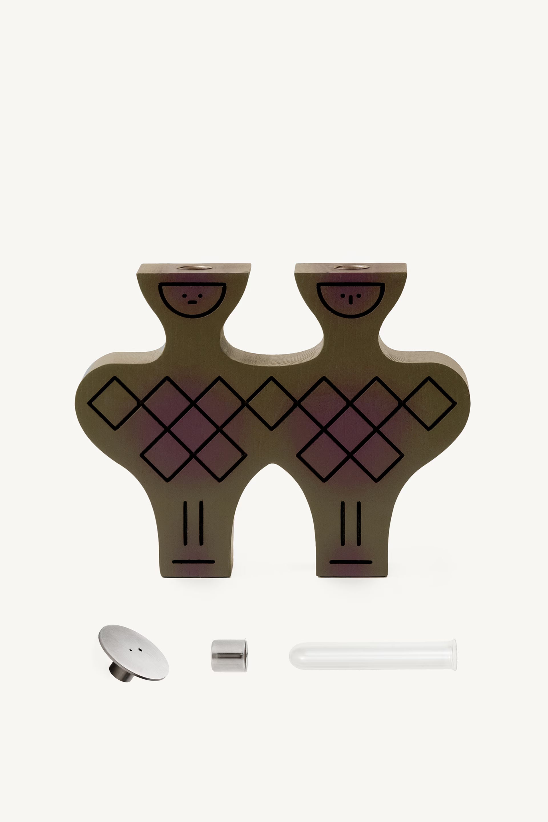 The set consists of: a figurine, a candle cap, an incense holder and a glass test tube.