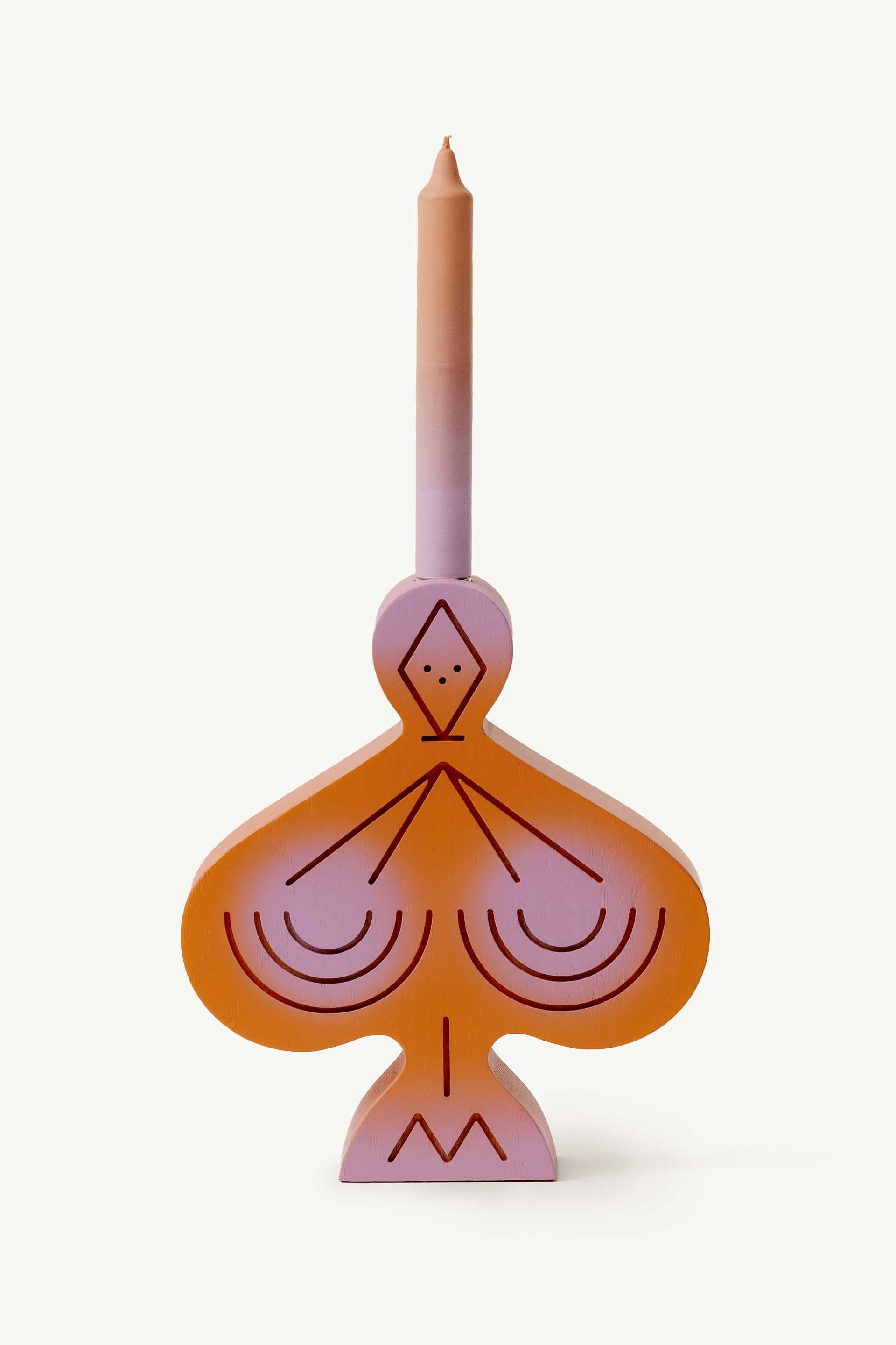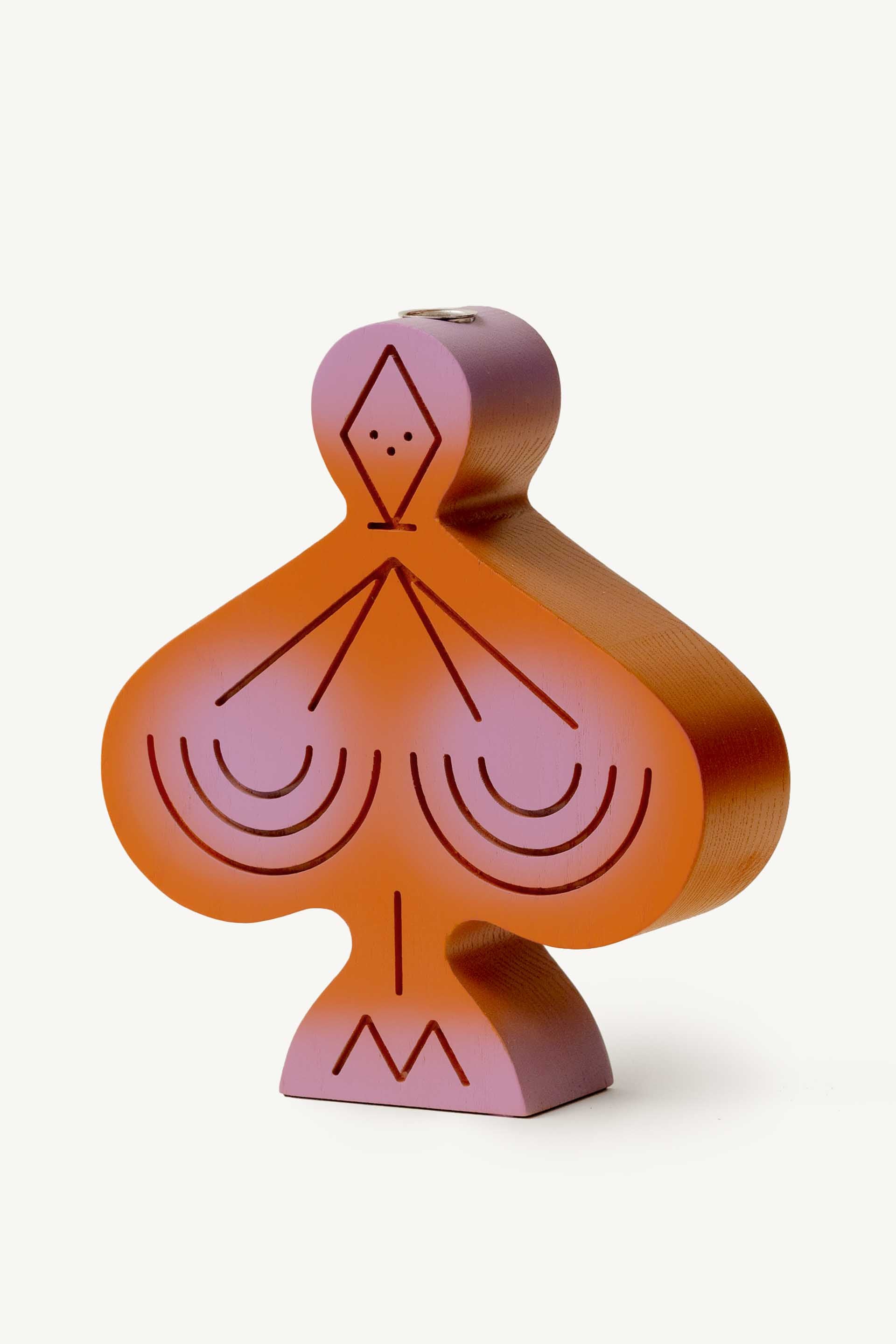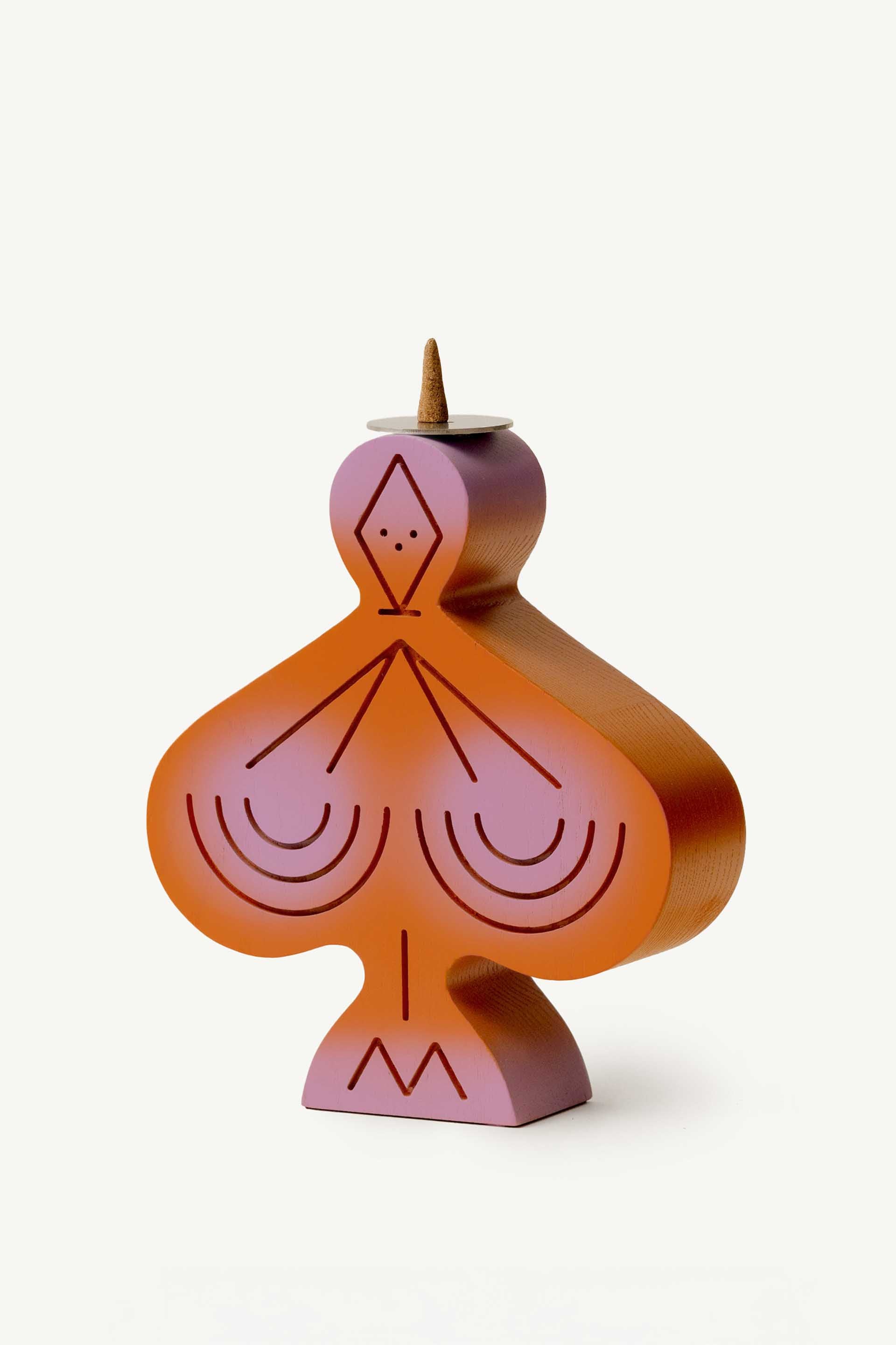 Ash wood figurine that serves as stick-candle holder, vase, incense burner, bookend and artistic object. Each piece is hand painted, therefore unique.