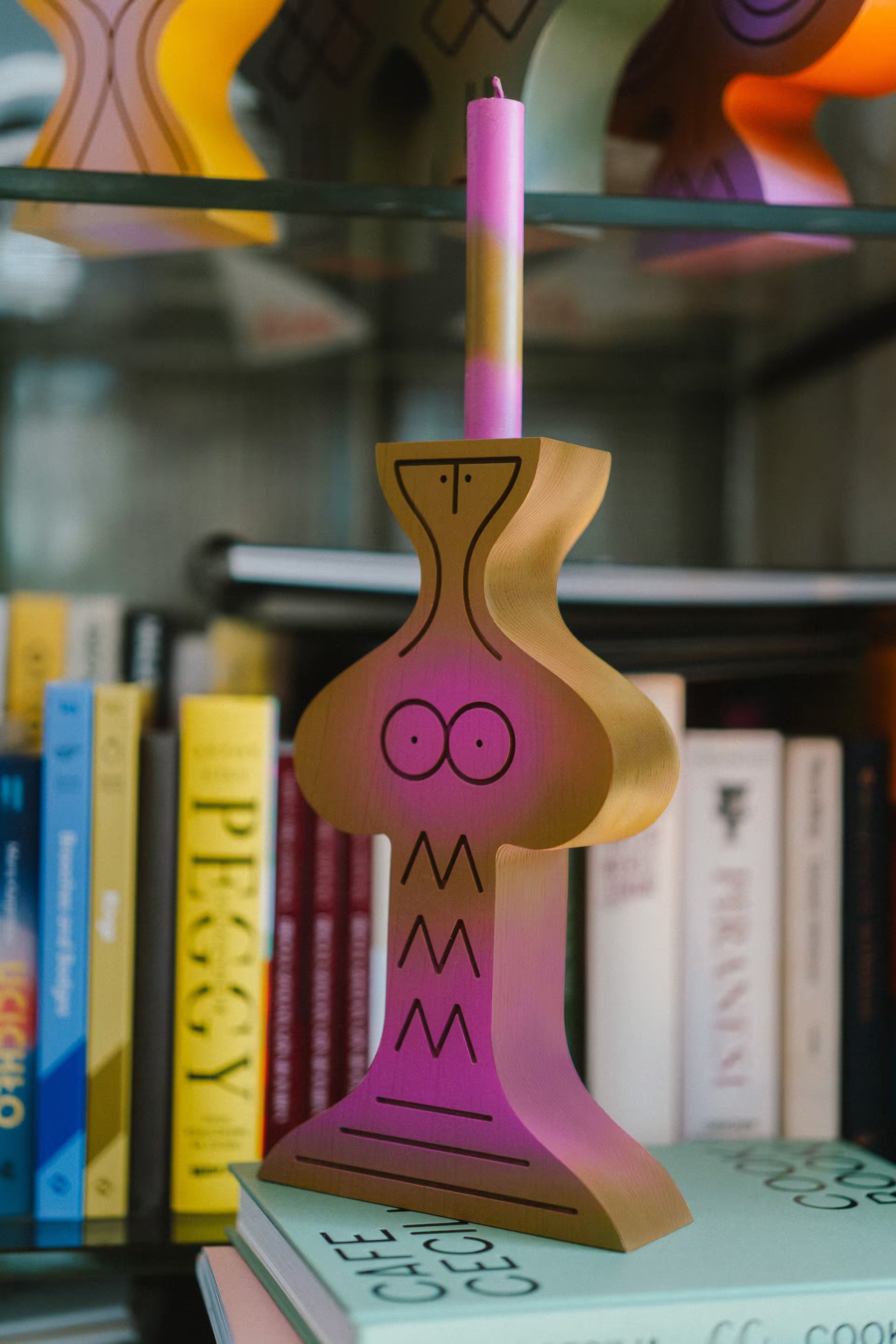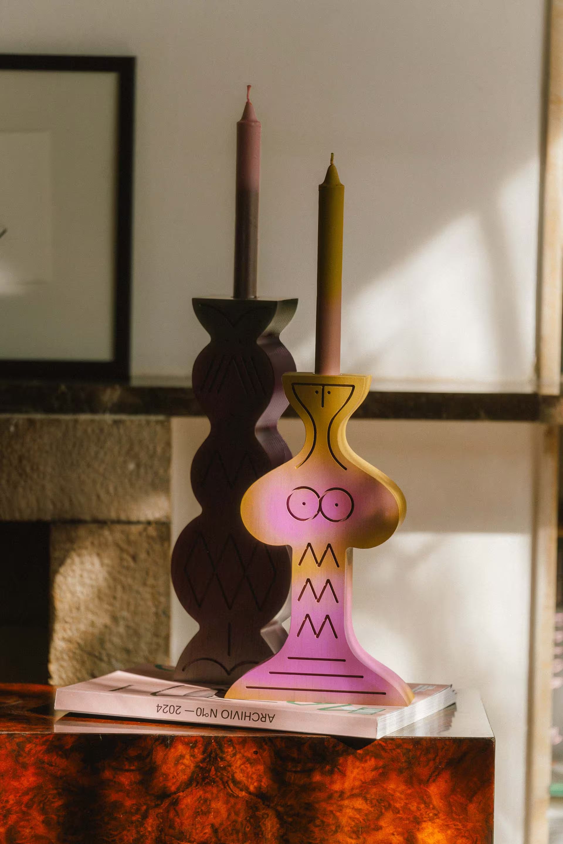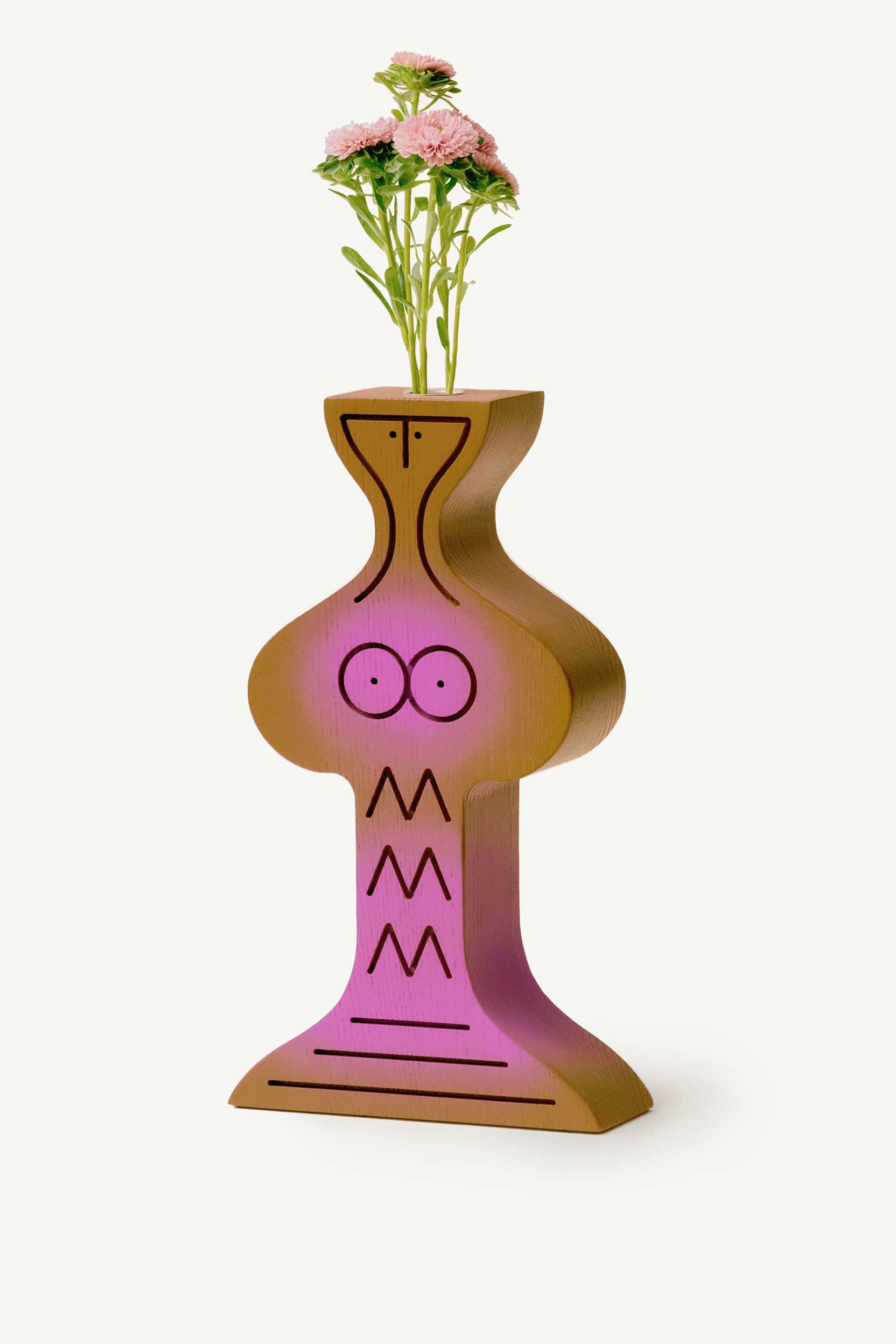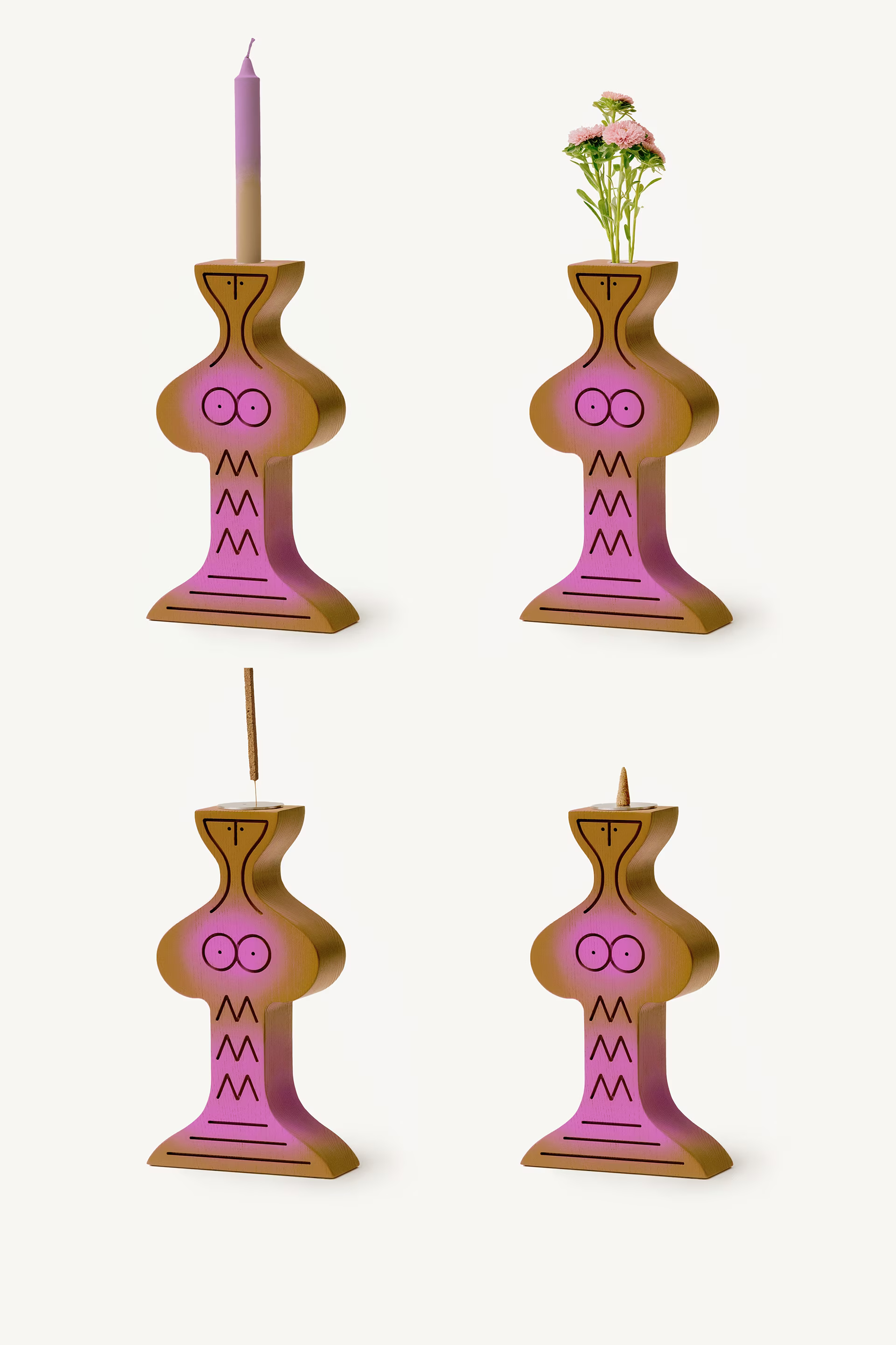 Ash wood figurine that serves as stick-candle holder, vase, incense burner, bookend and artistic object. Each piece is hand painted, therefore unique.